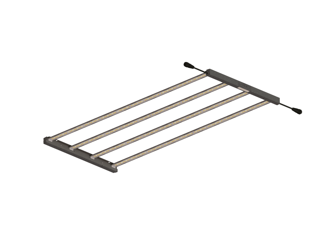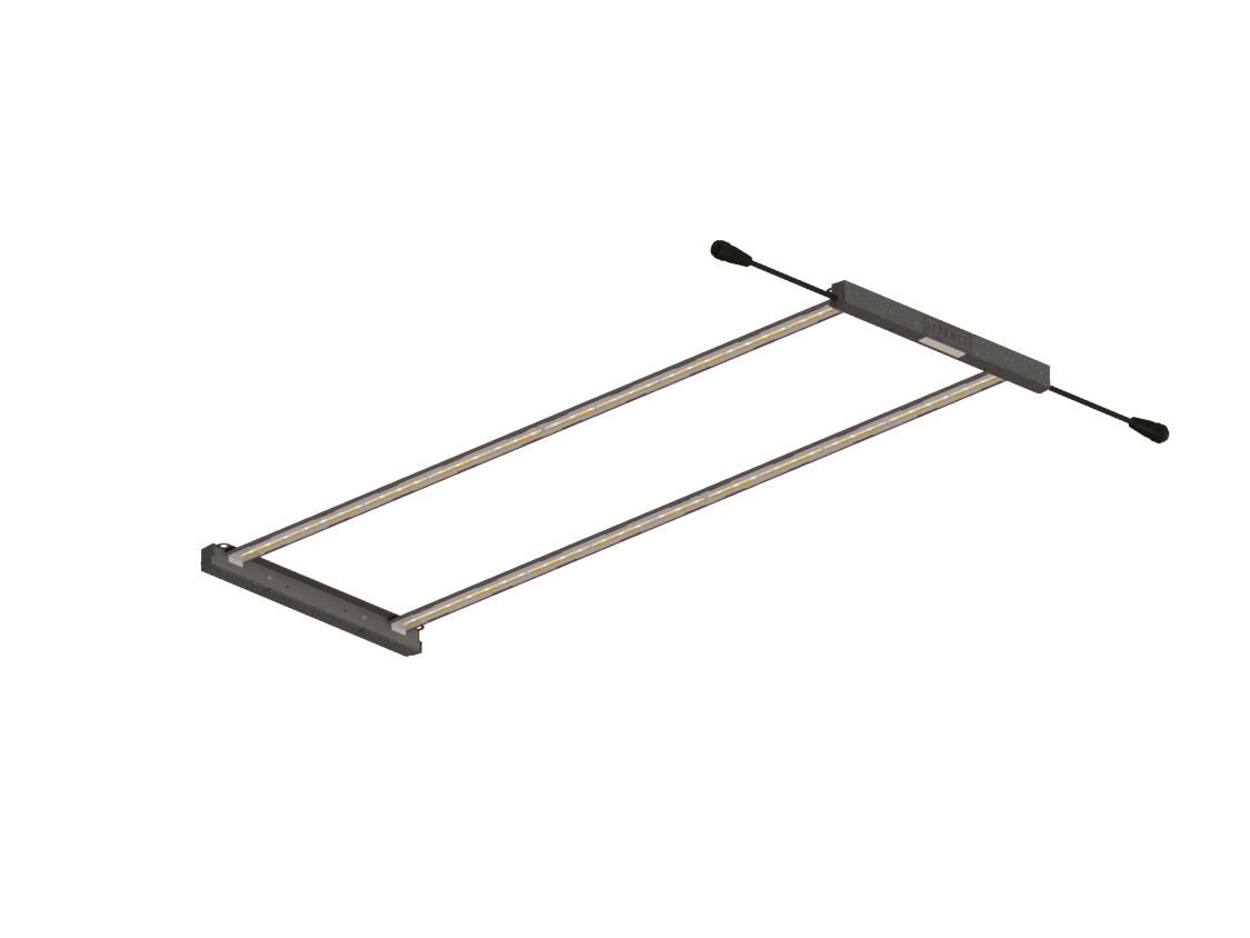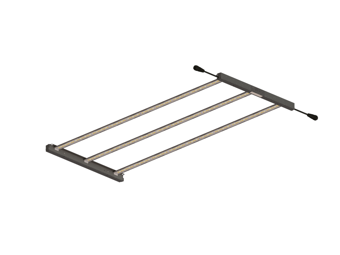 The Fluence RAZR features plug and play modularity and a low profile design that is suitable for vertical farming. Fixtures are available in 2, 3, and 4 bar configurations and can be paired with various external power supplies to accommodate a range of farming applications.